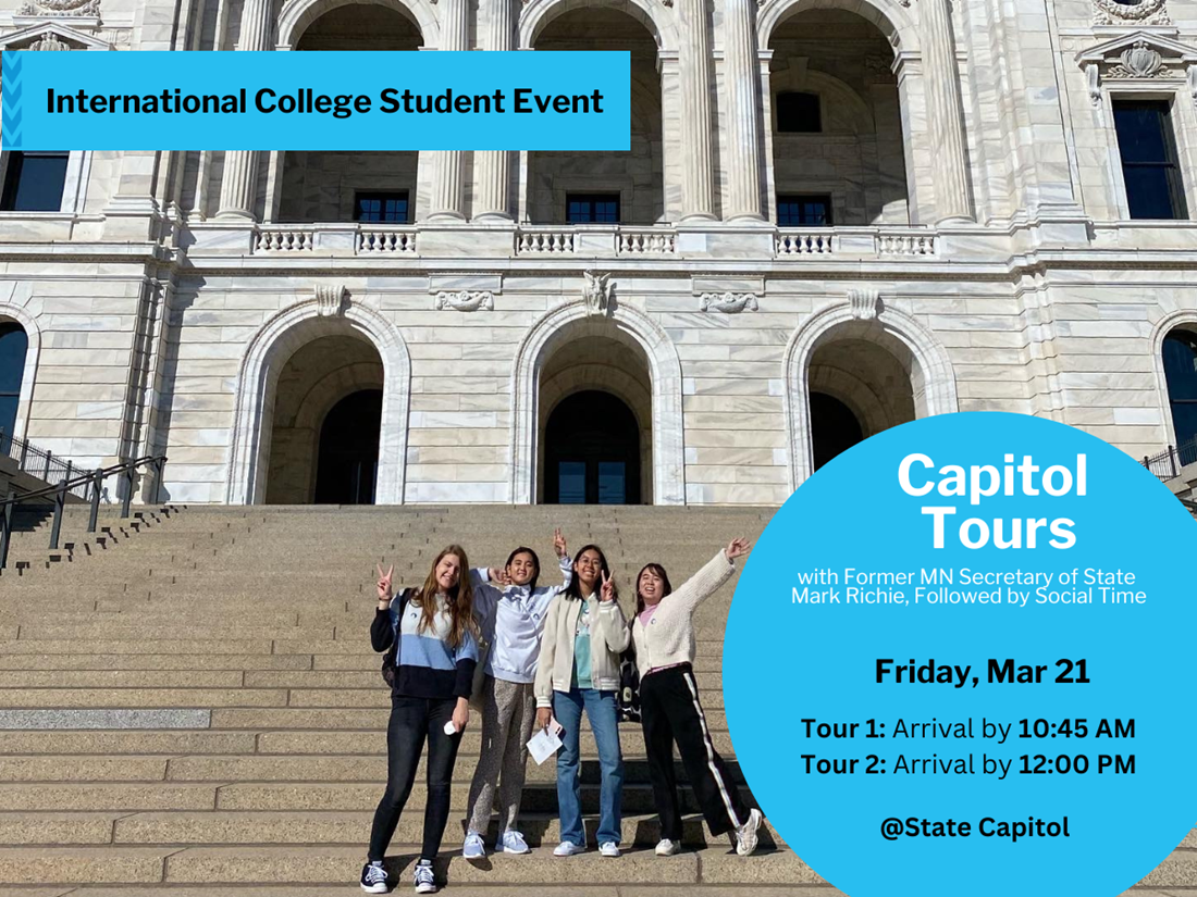 Minnesota State Capitol 75 Rev. Dr. Martin Luther King Jr. Blvd., Saint PaulThis event is being held in-person and is open to international and globally-minded students. Join an unforgettable Minnesota State Capitol...