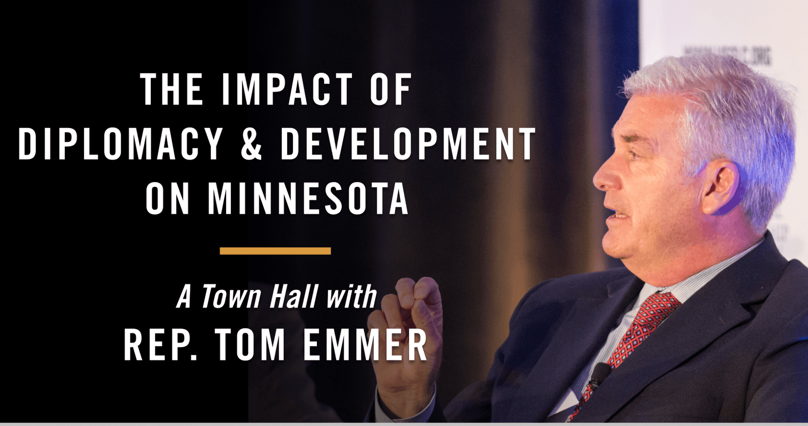 From combatting the global COVID-19 pandemic to supporting Minnesota exports and cultural exchanges, Rep. Emmer will talk about the importance of U.S. global engagement.