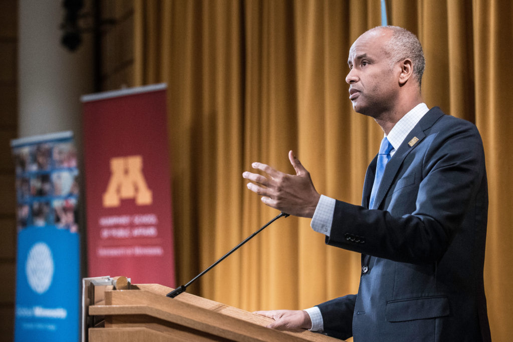 The Honorable Ahmed D. Hussen, Canada’s Minister of Immigration, Refugees and Citizenship, spoke to an at-capacity crowd at the Humphrey School of Public Affairs during a recent visit to Minnesota. His presentation focused on Canada’s measured approach to immigration and refugee resettlement policies, including plans for a gradual increase in immigration over the next three years. He also met with resettlement agency staff and other advocates, and members of the local Somali community. Minister Hussen’s visit was presented in partnership with the Consulate General of Canada in Minneapolis and the Humphrey School of Public Affairs.