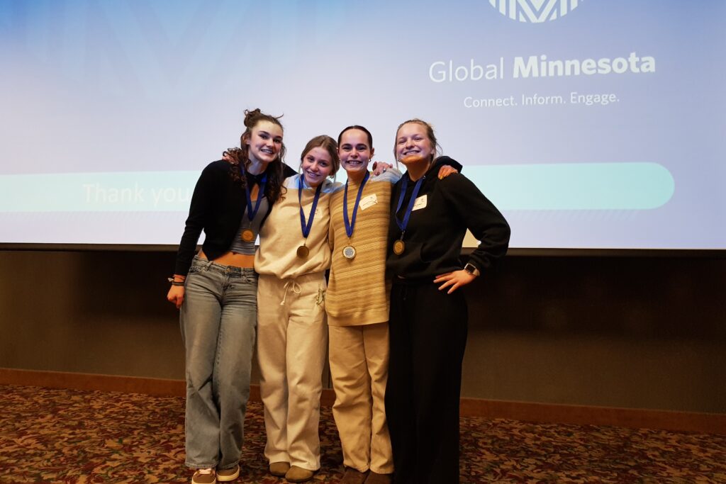This high-energy global knowledge competition rivaled any high school basketball tournament for its excitement and enthusiasm. Nearly thirty high-school teams of four students each answered a series of multiple-choice questions on international topics including NATO, Space and National Security, Current Events, and Critical Minerals in Africa. Teams joined from across Minnesota, with a team from Mounds View High School taking second place and a team from Grand Rapids High School taking third place. A team from St. Paul Central High School was awarded the “Team Spirit” award for their high-energy enthusiasm and friendly competitive spirit.